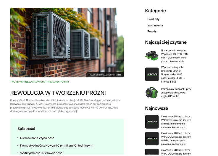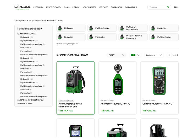 Potrzebna była nowa platforma, która nie tylko w czytelny i uporządkowany sposób zaprezentuje szeroką gamę produktów, ale przede wszystkim zbuduje wizerunek Wipcool jako solidnego, godnego zaufania partnera dla profesjonalistów z branży HVAC.